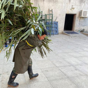 孙铭伟是研究中心的一名大熊猫保育员,打扫活动场和内舍、搬运竹子和给大熊猫喂食,是他的日常工作。每只成年大熊猫一天要吃掉50公斤左右的竹子,成捆的竹料压弯了腰,虽然只穿着两件单衣,一趟下来,这位小伙子额头上已是密密的汗珠。