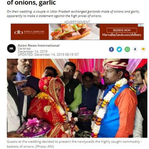 原标题:抗议洋葱价格飙升 印度新人婚礼互戴洋葱“花环”(图)