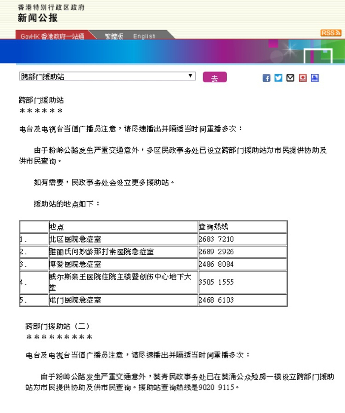 跨部门支援站将为死伤者家属提供支援,市民可联络支援站查询。林郑表示,警方正进行辨认死者工作,市民可致电警方了解死者资料。如果市民情绪受到困扰,可致电社会福利署热线,希望为有需要的市民提供支援。