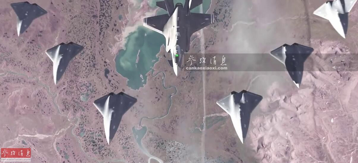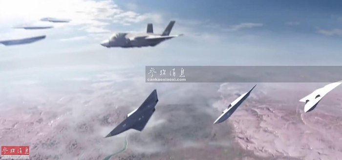 F-35A有人战机与无人僚机编队,并指挥后者作战的动态图。