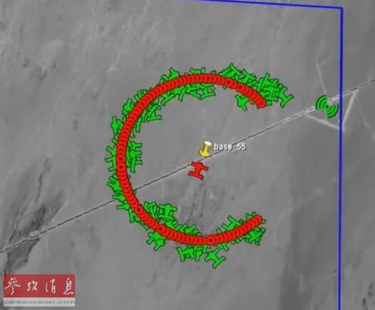 图为地面控制站上显示的无人机编队。可见编队完成后,微型无人机群开始以编队方式向目标区域移动。