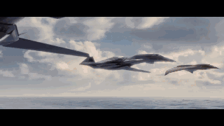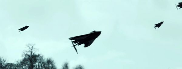 早在2005年的科幻电影《绝密飞行》中,也出现过EDI无人战机与F A-37有人战机编队作战的情节。图为电影动态图。