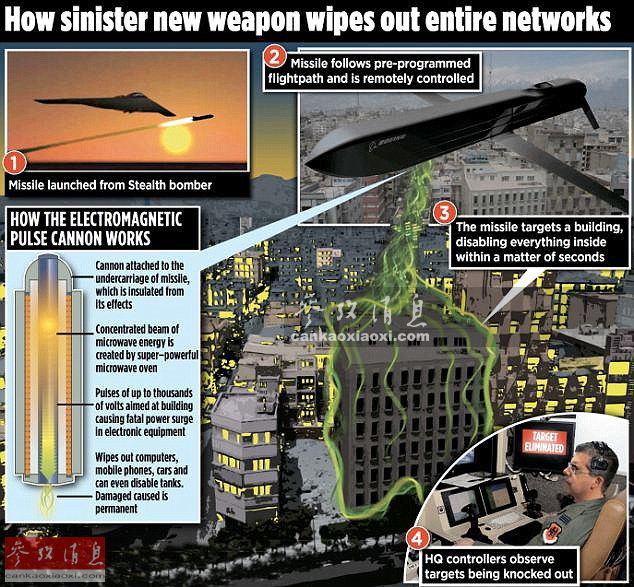 这种“停电导弹”的全称为“电子对抗高能微波先进导弹计划”(简称CHAMP),实际是一种搭载高能微波弹头的巡航导弹,由美国波音公司研发,可在瞬间发生高功率微波瘫痪敌方电子设备或电网。