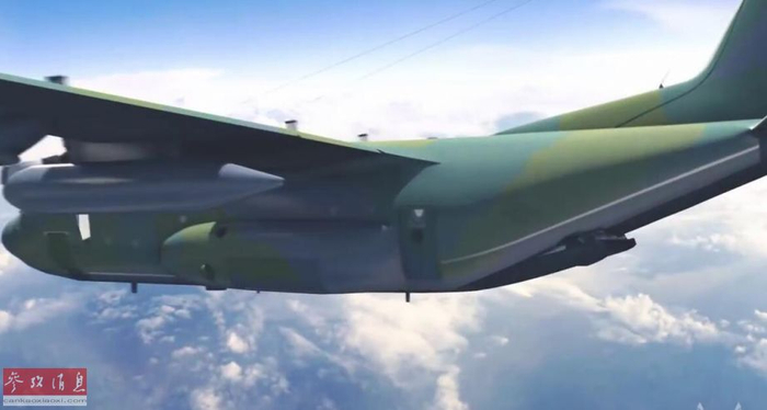接下来展示的是微型无人机“蜂群作战”(具有小型化、数量多、成本低的优势,可靠数量弥补单机性能的不足)技术。视频中可见一架C-130运输机空投了一个微型无人机“集束式投放容器”。