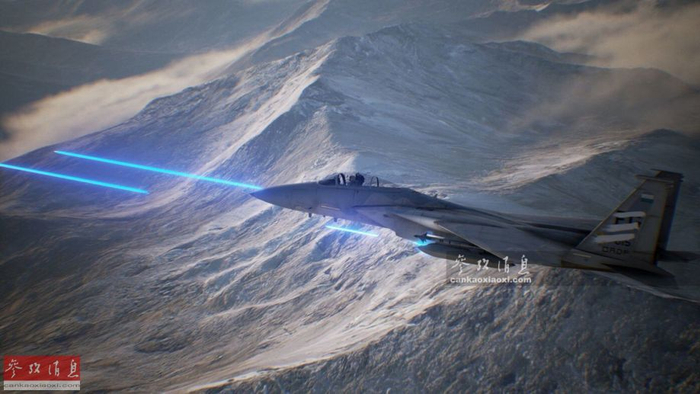 F-35A使用高能激光炮摧毁敌军战机的动态图。