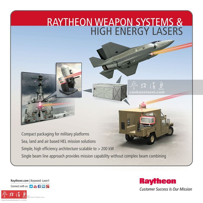 从雷锡恩公司这张高能激光武器系统宣传图也能看出一些未来美军激光武器的发展趋势,例如紧凑型激光器,可以搭载在海陆空多种平台上,另外就是高功率,普遍高于200千瓦。