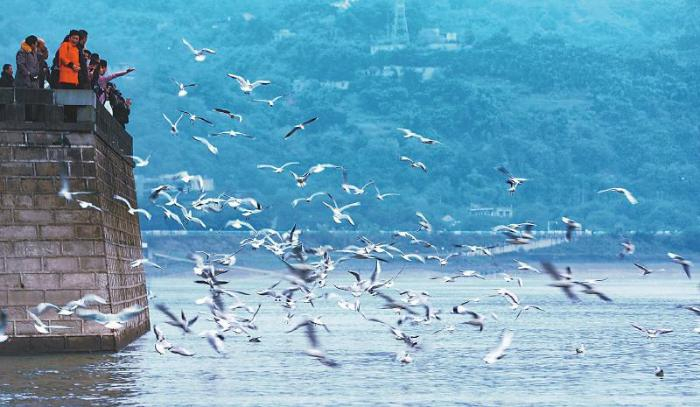 12月初,北方来的红嘴鸥引来众多泸州市民观赏 刘学懿摄
