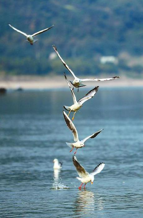 乐山师范学院生命科学学院教授付义强介绍,乐山的红嘴鸥主要来自新疆、内蒙古、西伯利亚等地,对栖息地的环境有较高要求,“水质差的地方是看不见它们的。”