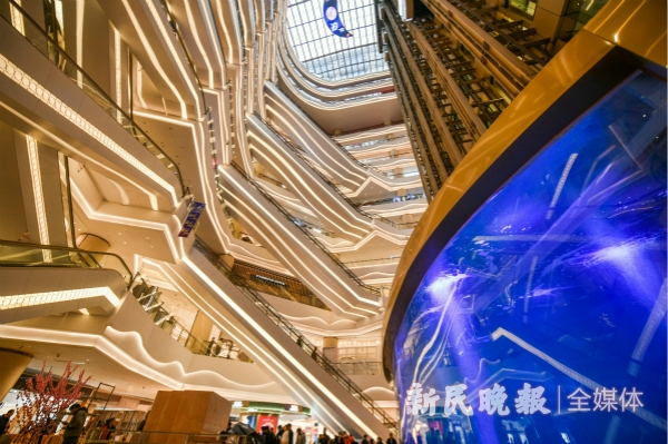 图说:新世界城将升级回归,一楼北中庭新增中国首家百货内的海洋水族馆 新民晚报记者 陈梦泽 摄(下同)