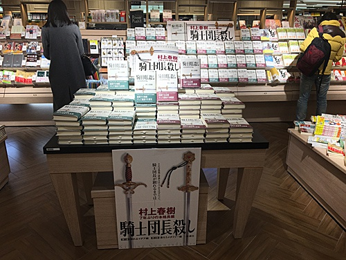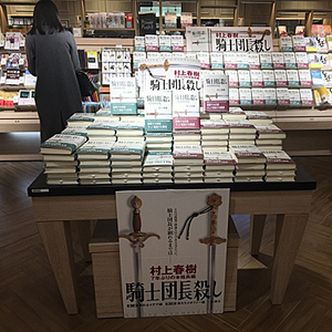 资料图:日本东京都涩谷区的一家书店摆放着村上春树的长篇小说《杀死骑士团长》(新华社)