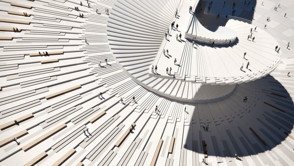 动态的螺旋屋盖既是外观又是空间。外观上,上海大歌剧院连接大地和天空,立足于城市又面向城市,为人们创造出别样景致。同时螺旋屋盖也是面向公众的舞台,既能满足大型活动的使用需求,又能为市民或游客的日常参观提供乐趣。