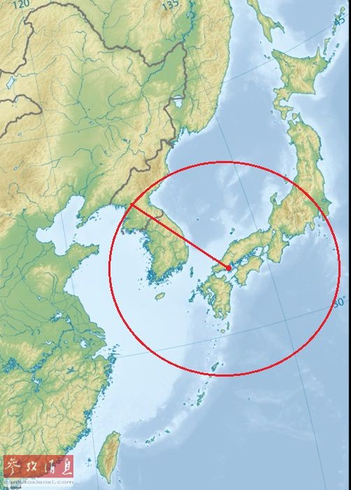 这张示意图标出了F-35B从岩国基地起飞,所能覆盖的作战半径(876千米),可打击包括半岛、中国东海以及冲绳的大部分区域,可见对周边国家会具有相当威胁。