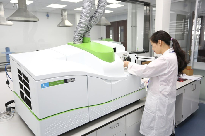 检测分析中心占地面积约1200平方米,主要用于理化分析和仪器分析实验。实验室现配置各类检测仪器设备约80余台/套,其中包括沃特斯公司(Waters)的高效液相色谱仪、液相三重四级杆质谱联用仪,安捷伦(Agilent)公司的气相色谱仪、气相色谱三重四级杆质谱联用仪,铂金埃尔默公司(PerkinElmer)的电感耦合等离子体质谱仪、原子吸收光谱仪,意大利迈尔斯通公司的测汞仪,北京海光公司的原子荧光光谱仪,奥地利安东帕公司的自动进样密度计,瑞士梅特勒卡尔费休水分仪等国际先进的检测精密仪器。
