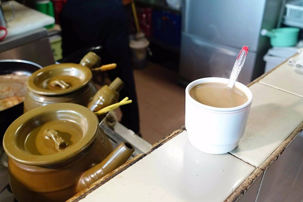 难以想象的是,咖啡用中药罐煲煮,受火更为均匀全面,口感更香滑浓郁,于是大受欢迎,再配上蛋挞,就是最佳下午茶。做蛋挞剩下的鸡蛋壳也不闲着,按土偏方,放入瓦煲同煮,据说能“加强口感还补钙”,可谓物尽其用。