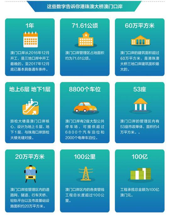港珠澳大桥澳门口岸由中交集团承建,主要包括境内车库、旅检大楼、境外车库、市政及外围工程以及配套设施等四大主体部分。