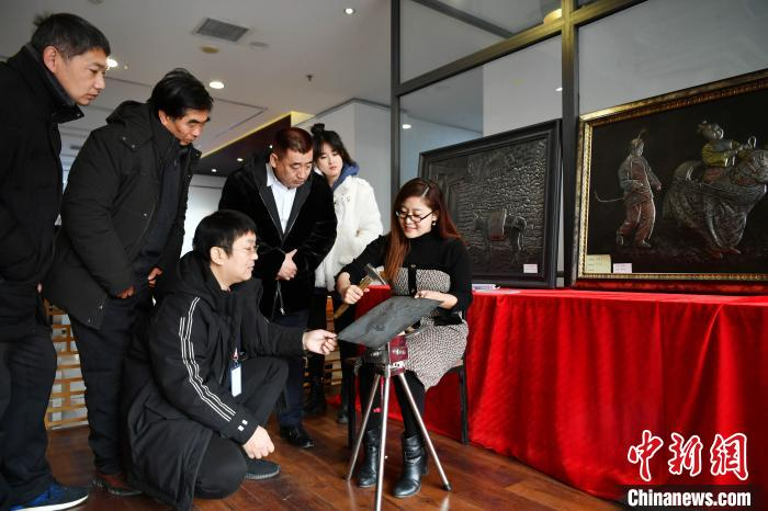 图为河北省非遗项目“郭氏铁板浮雕艺术”市级传承人郭墨涵现场展示创作技巧。 翟羽佳 摄