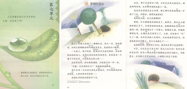 图说:第七单元的前言及课文《带刺的朋友》 采访对象供图