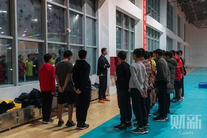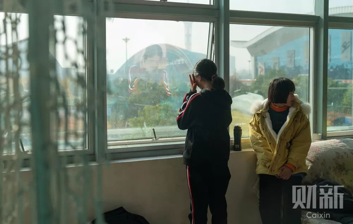 11岁的新队员张正阳第一次离开父母,对着窗外抹眼泪,比她早来两周的队友曹颖不知怎么安慰,只能默默陪在旁边。