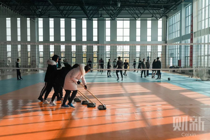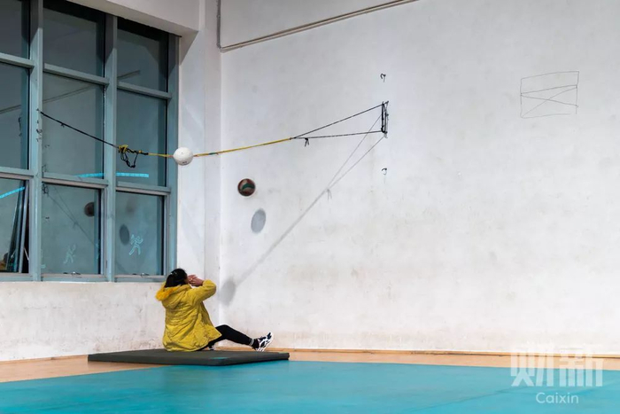 冬日的阳光里,女排姑娘们在训练拦网。除了练排球,目前她们还可以在旁边的教室里学习五年级到九年级的文化课。