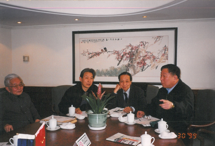 夏商周断代工程聘请历史学家李学勤(右二)、测年专家仇士华(右一)、考古学家李伯谦(左二)和天文学家席泽宗(左一)为首席科学家(夏商周断代工程办公室提供)