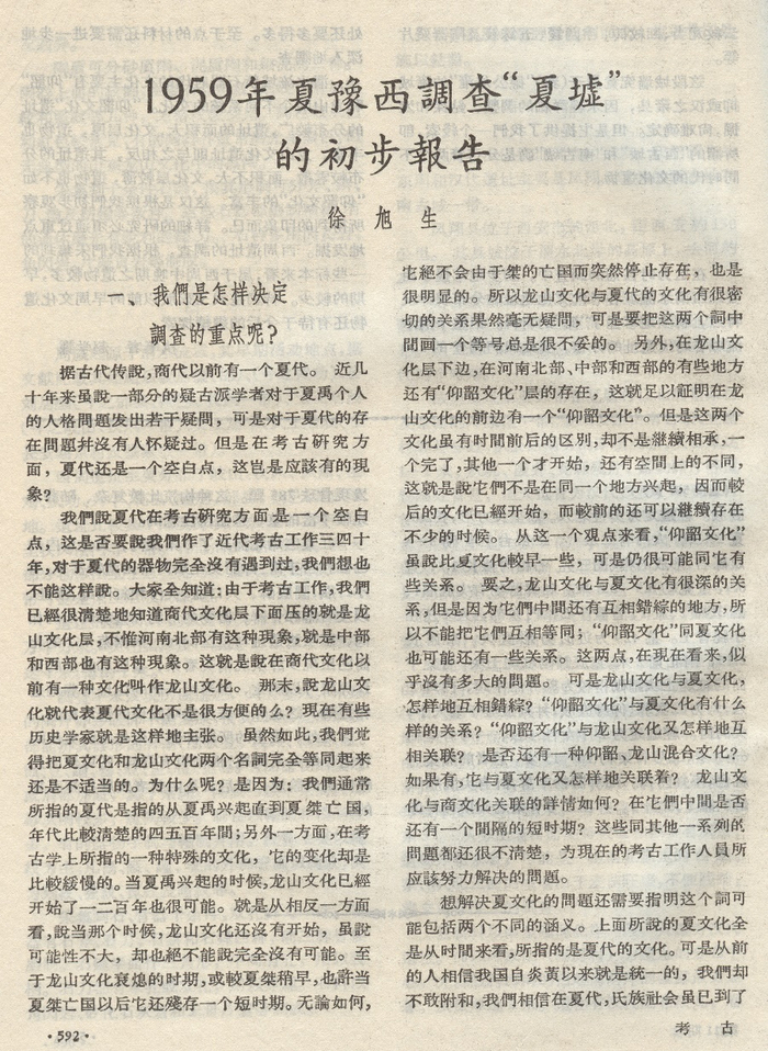 徐旭生:《1959年夏豫西调查“夏墟”的初步报告》,《考古》1959年第11期(二里头队供图)