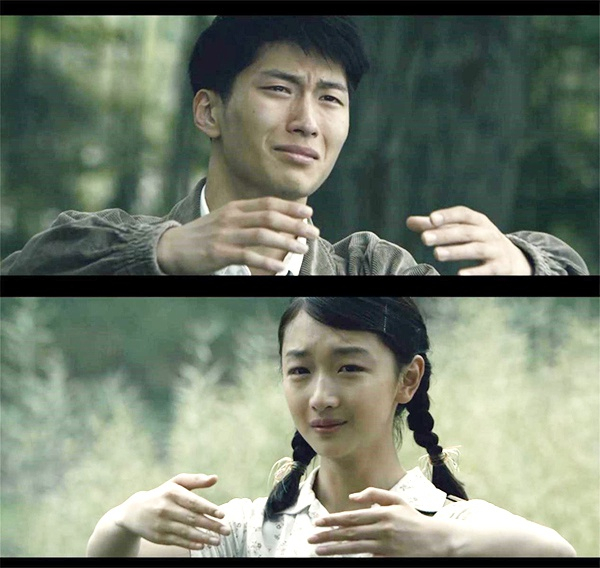 《山楂树之恋》中,老三与静秋隔空拥抱。电影讲述一个纯爱故事,也折射时代对个体的伤害