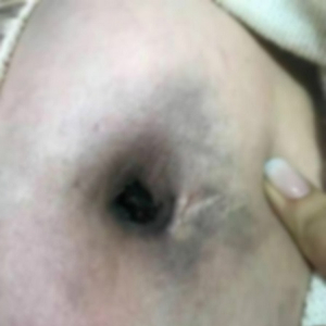 图说:李小姐肚脐被烫伤,一片焦黑 来源/受访者提供