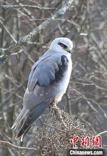 黑白分明的羽毛,明亮的红眼睛,腿部黄色是黑翅鸢的特征 黄兴晏 摄