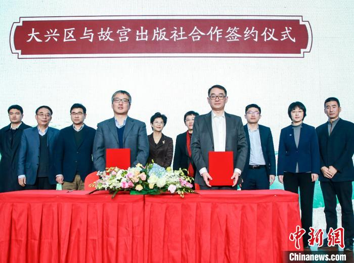 12月21日,第二届北京南海子文化论坛在中国人民大学举办。图为大兴区与故宫出版社签署战略合作协议。 北京市大兴区供图 摄