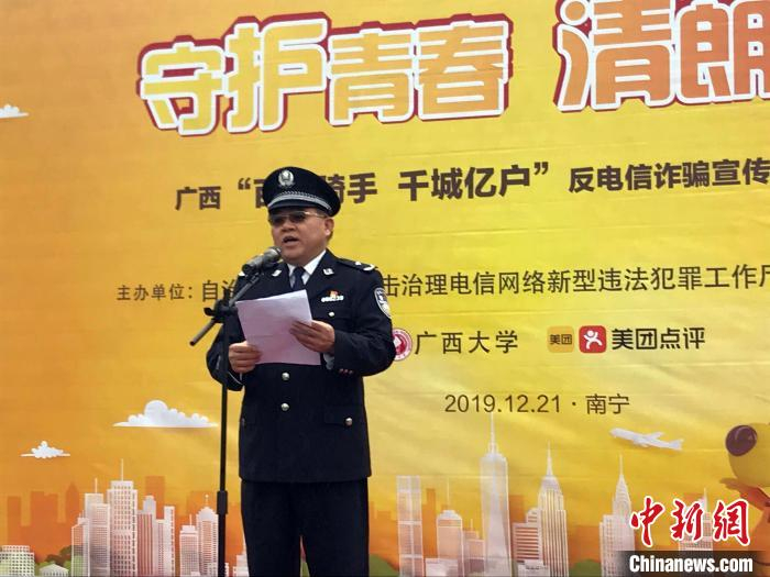 中新网南宁12月22日电 (记者 蒋雪林)广西壮族自治区人民政府打击治理电信网络新型违法犯罪工作厅际联席会议办公室副主任、公安厅刑侦总队副总队长成天晓21日在南宁表示,广西针对宾阳县网络诈骗犯罪活动开展严厉打击和整治行动,成效初显。