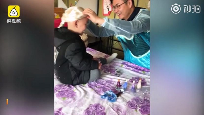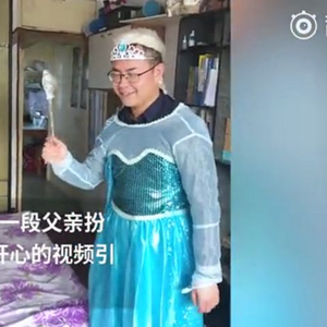 为了她,这个汉子戴上假发,穿上了艾莎公主裙…