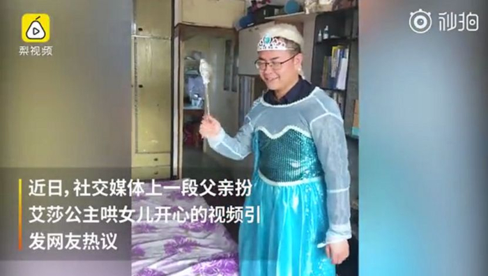 原标题:为了她,这个汉子戴上假发,穿上了艾莎公主裙…