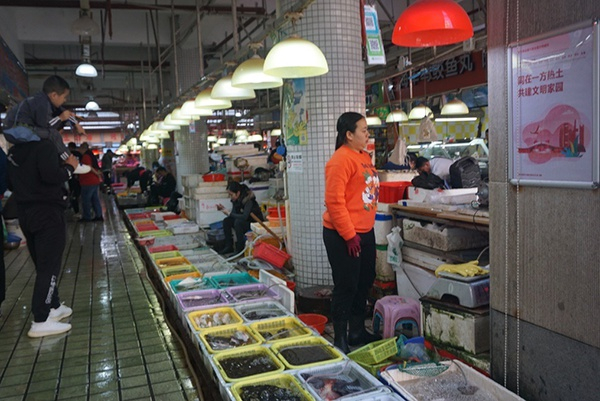 蛇口市场的水产摊位,2019年无车日活动当日。