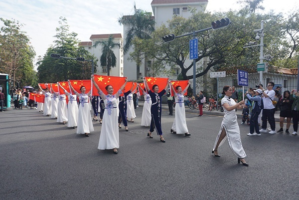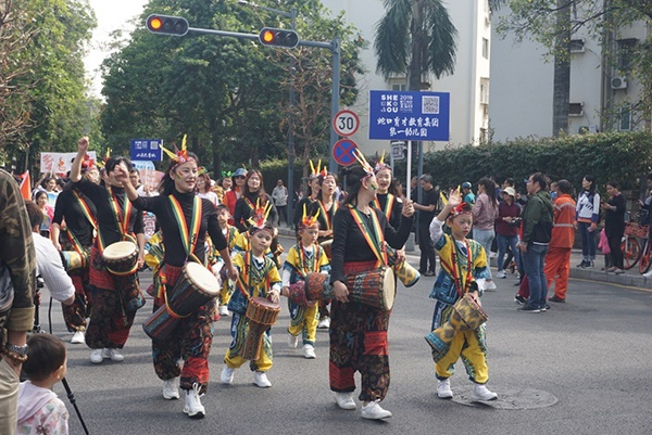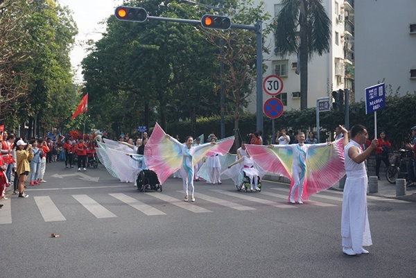 在简短的开场致辞和表演之后,便是社区大游行。包括蛇口地区学校、儿童艺术团体和残障团体在内的游行队伍,依次通过街道。