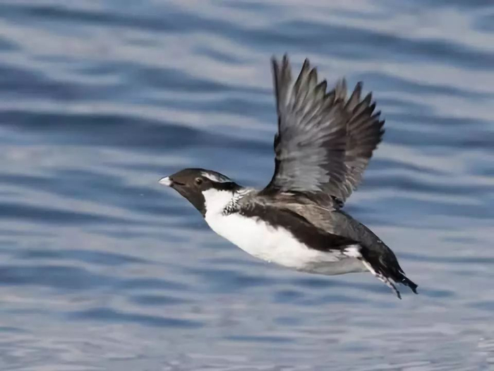 扁嘴海雀(Ancient murrelet),一直以来被视作鸟类家族中的“四不像”。它嘴像麻雀,体似企鹅,脚蹼如鸭,雏鸟羽色同幼鸡。最迥异于其他鸟的是,它的双腿生在尾部,站立时直立身子,走起路来一摇一摆得像是步履蹒跚的老人。