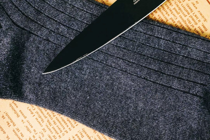 为了证明它真的耐磨,我们拿小刀比划比划,简直就是袜子界的扛把子,耐磨实锤了。