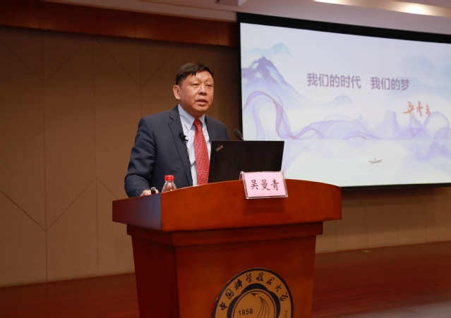 12月23日上午,“国企领导上讲台”公开课活动在中国科大东区师生活动中心举行,中国电子科技集团有限公司(以下简称中国电科)总经理、党组副书记、中国工程院院士吴曼青作题为《我们的时代 我们的梦》的主题报告。中国科大党委副书记、纪委书记毕金初主持报告会,校长助理吴枫、相关部门负责人,以及全校200余名师生聆听了报告会。