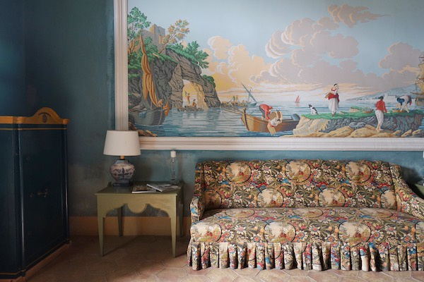 紧邻住宅的是草坪、一处掩映在柏树和棕榈树阴影中的英国花园和两座波斯式凉亭,带有水渠。这处庭院以远方的大海为背景,显得尤其优雅可爱。这里都是Andrea新建的部分,租用庄园的客人们可以在这里举办各种活动。