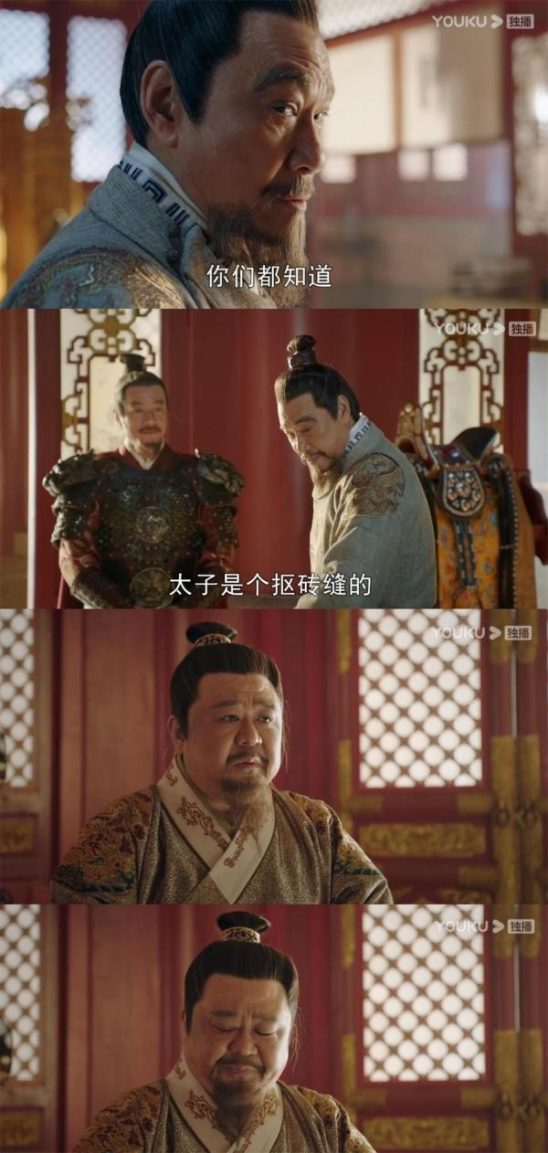 剧中朱棣对于朱高炽,的确是提防与打压为主。但剧情的表现,倒不是《鹤唳华亭》那样,皇帝给太子挖坑跳,变着法子让太子痛苦难受,它更近乎一个严厉的父亲对于一个个性软弱的儿子的不满,知道儿子个性软,也怕自己,反复试探捉弄儿子,把他当受气包。比如第2集,朱棣远征回朝,太子结束监国,监国期间朱高炽将今年军队冬装的军备拿去安置百姓了,太子来了,朱棣也只是对军官们嘲讽了太子一句,“你们都知道,太子是个抠砖缝的”。无论是朱棣的表情语气,还是太子的表情,像是家常的训斥,而不是一般皇室剧的肃杀氛围。