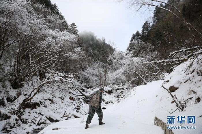 12月13日,巡护员张雄在巡护途中 新华社发(杜哲宇摄)
