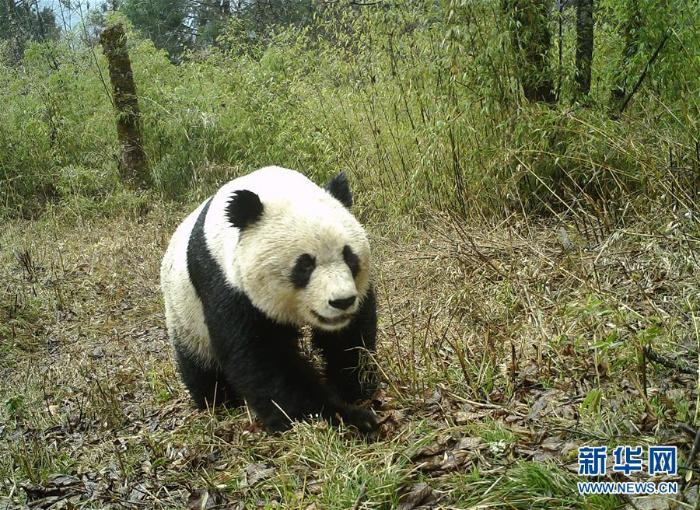这是在甘肃白水江国家级自然保护区内布设的红外相机拍摄的野生大熊猫活动影像(红外相机4月13日摄) 新华社发(杜哲宇摄)
