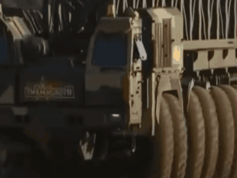 KAMAZ-7850超重型TEL进行机动表演动态图,可见其不同一般的转向能力。