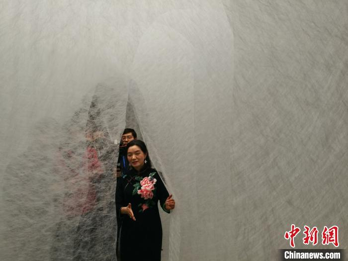 姚建萍展示展览中的装置艺术。 钟升 摄