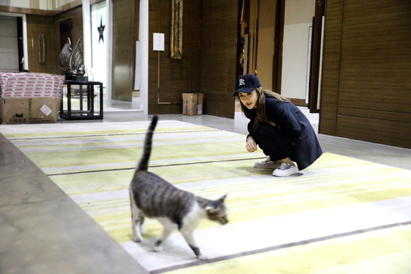 薇娅结束了直播工作后,前往会议室参加复盘会,在这个间隙她停下来逗公司里养的小猫。
