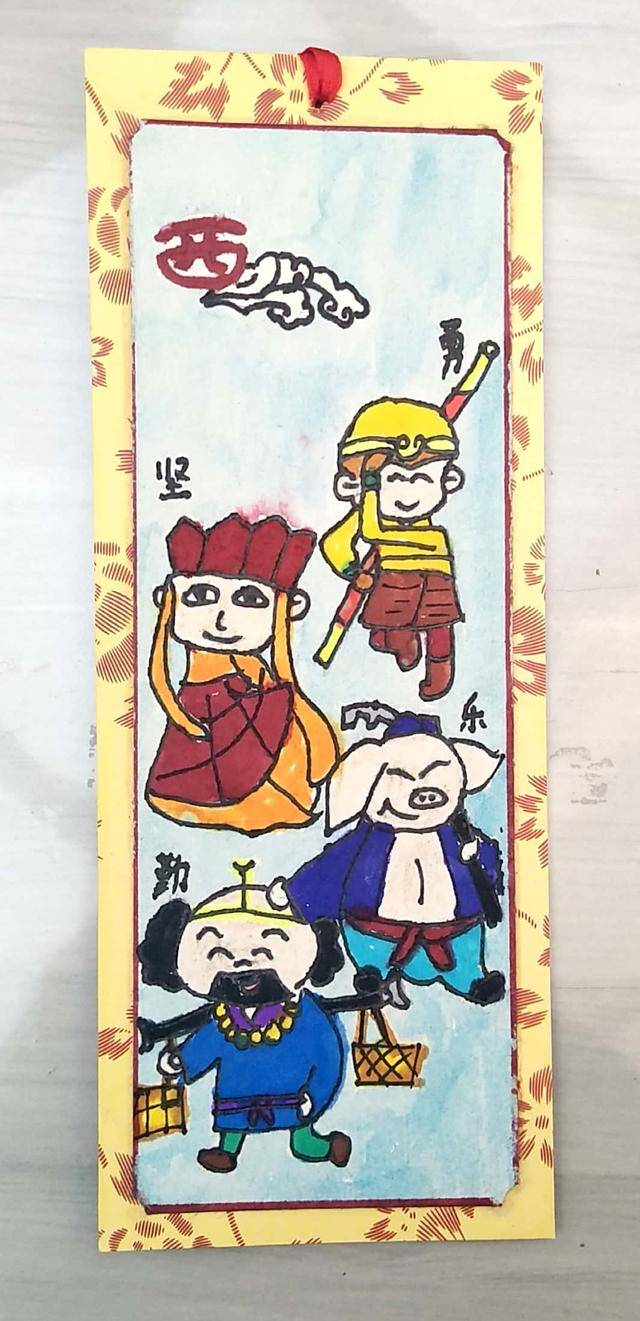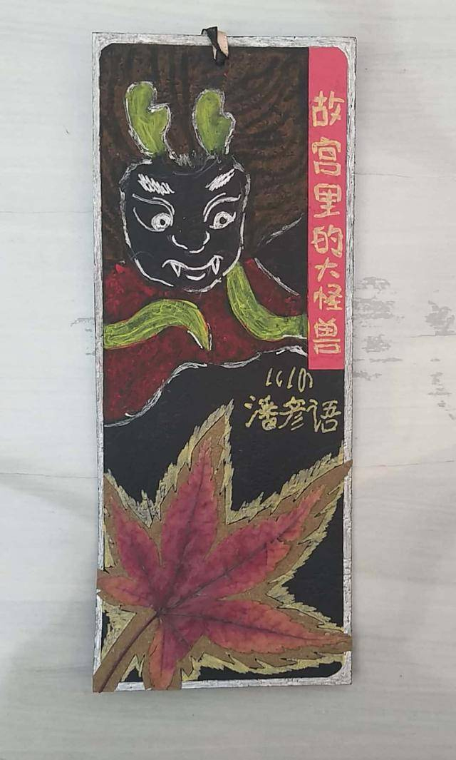 读书、然后根据自己的理解设计书签,这比单纯的读书活动更好玩。孩子们纷纷开始“脑洞大开”,天马行空的创意纷涌而至。《红楼梦》《西游记》《昆虫记》《小王子》《哈利·波特》《海底两万里》《骑鹅旅行记》《小狗的小房子》……孩子们用创意和色彩绘制出一张张精美的书签。在一(10)班潘彦语的想象中,故宫里的大怪兽长着两只犄角,身穿红色披风,还长着两个不讨人厌的大獠牙。有同学把小王子的形象设计在中国团扇形的书签上,中西结合很有新意。很多同学爱读《昆虫记》,于是一只五彩斑斓的大甲虫,呆萌可爱的青豆虫,以及红彤彤的西瓜瓢虫都变身成书签的主体形象。