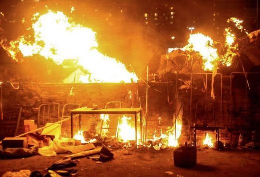 2019年11月,暴力示威者占据香港理工大学,在校园内制造大量汽油弹,破坏连接九龙与港岛的交通要道,并烧毁一辆防暴警车。