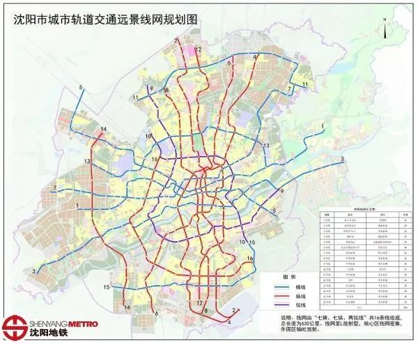 记者在沈阳市创建国家公交都市示范城市工作汇报会上了解到,沈阳市最新规划城区轨道线网由“七横、七纵、两L线”16条线组成,线总长630公里。线网覆盖了所有大型客流集散点及主要交通廊,同时规划统筹地铁、高铁、城铁、有轨等四个轨道网,打“多网合一”轨道交通系统。