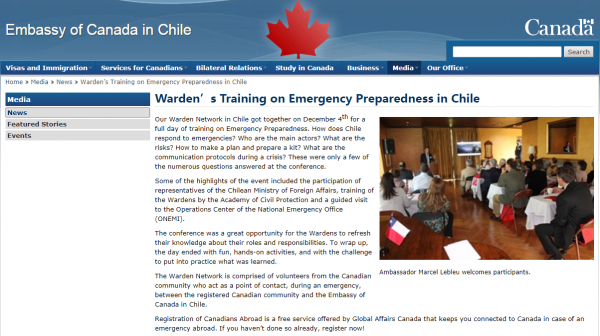 此外,加拿大驻智利使馆对看守人志愿者进行培训、驻海地使馆举行志愿者年度会议、总结看守人工作的消息,还都挂在这些使馆的网站和社交媒体账号上。