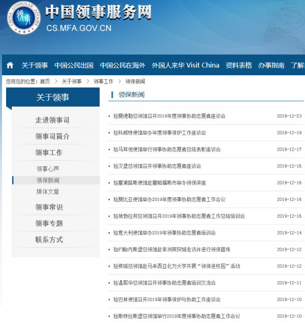 打开中国领事服务网,在“领保新闻”一栏有多条领事协助志愿者座谈会相关消息。也许是临近年底的缘故,中国驻越南、保加利亚、意大利、赞比亚等国使馆,以及驻斯特拉斯堡、汉堡、曼德勒等地总领馆都举办了此类会议。驻温哥华总领馆召开的会议只不过是其中一场。