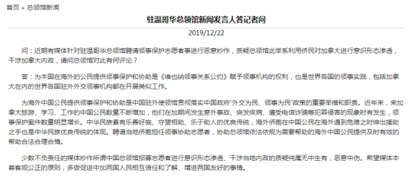 中国领事馆招志愿者,加拿大外交官恶意揣测